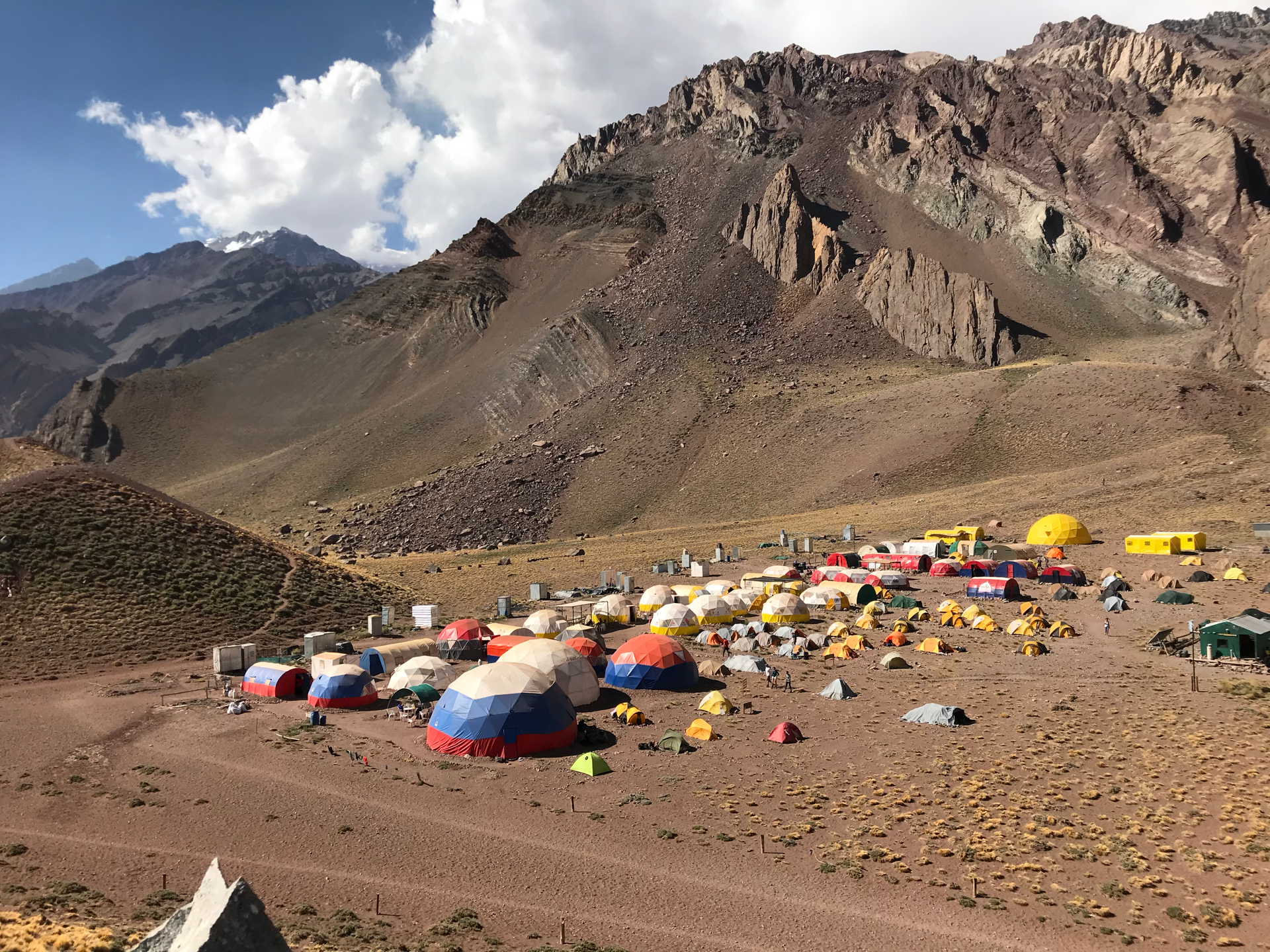 Fra vi når campen på 5050 moh (Plaza Canada), får vi et spektakulært "flyperspektiv" over Andesfjellene. Aconcagua regnes som en teknisk enkel bestigning, men samtidig som en krevende fjelltur. Det er ikke klatring med tau og isøkser, men forhold som sterk vind, raske væromslag, store temperatursvingninger og tynn luft gjør fjellet utfordrende.