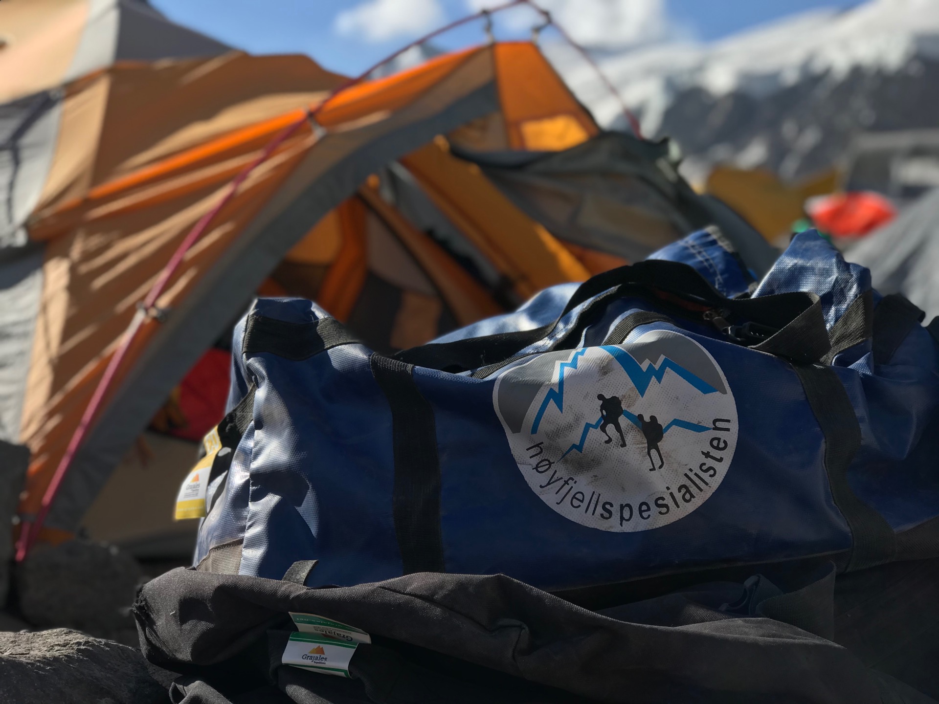 I base camp (4350 moh) samles fjellvandrere og ekspedisjoner fra hele verden. Vår base er tilknyttet en fast camp med spisetelt og kokker som lager varm mat. Tidligere brukte vi en fjellhytte her, men denne er nå stengt.
