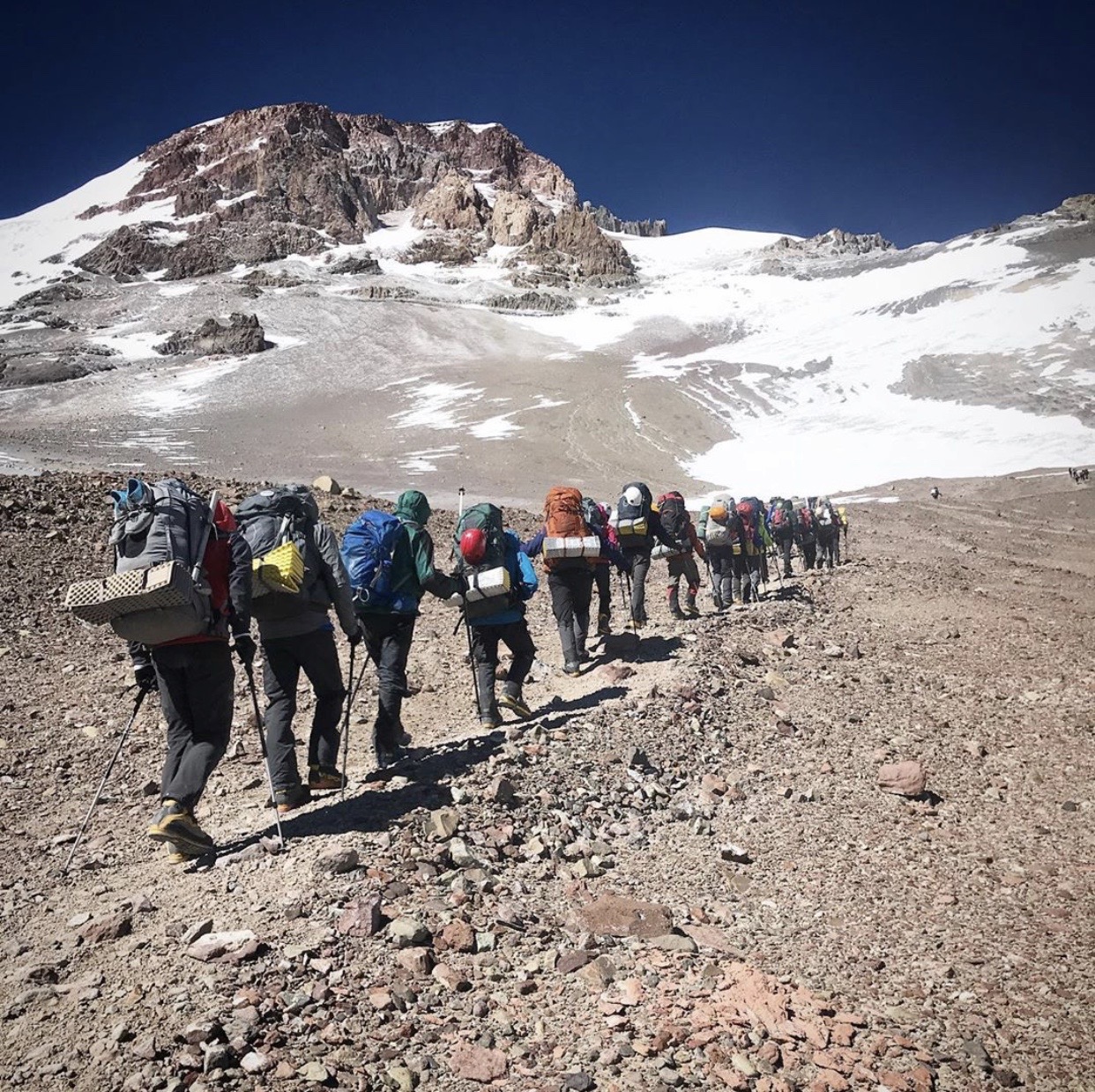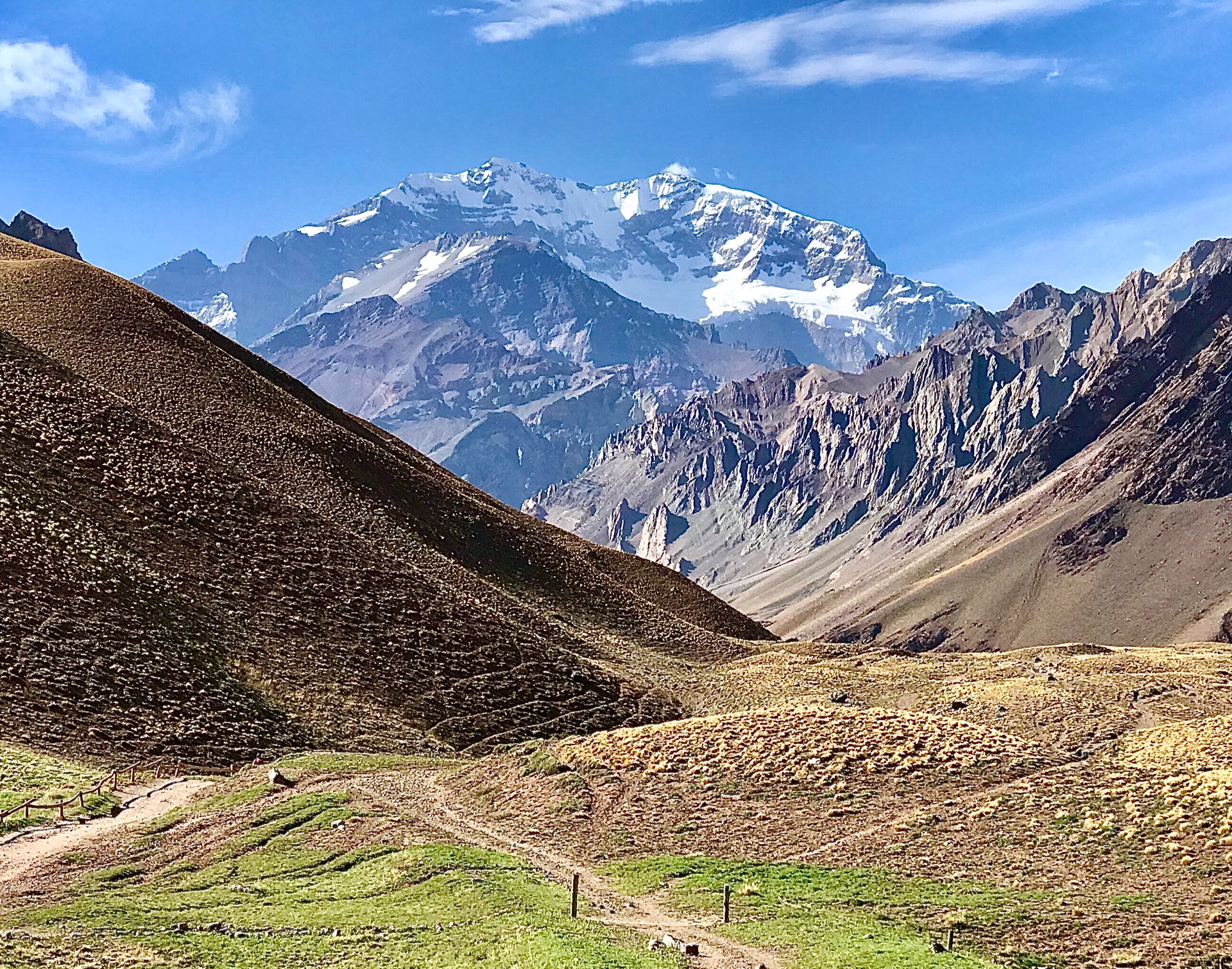 Fra vi når campen på 5050 moh (Plaza Canada), får vi et spektakulært "flyperspektiv" over Andesfjellene. Aconcagua regnes som en teknisk enkel bestigning, men samtidig som en krevende fjelltur. Det er ikke klatring med tau og isøkser, men forhold som sterk vind, raske væromslag, store temperatursvingninger og tynn luft gjør fjellet utfordrende.