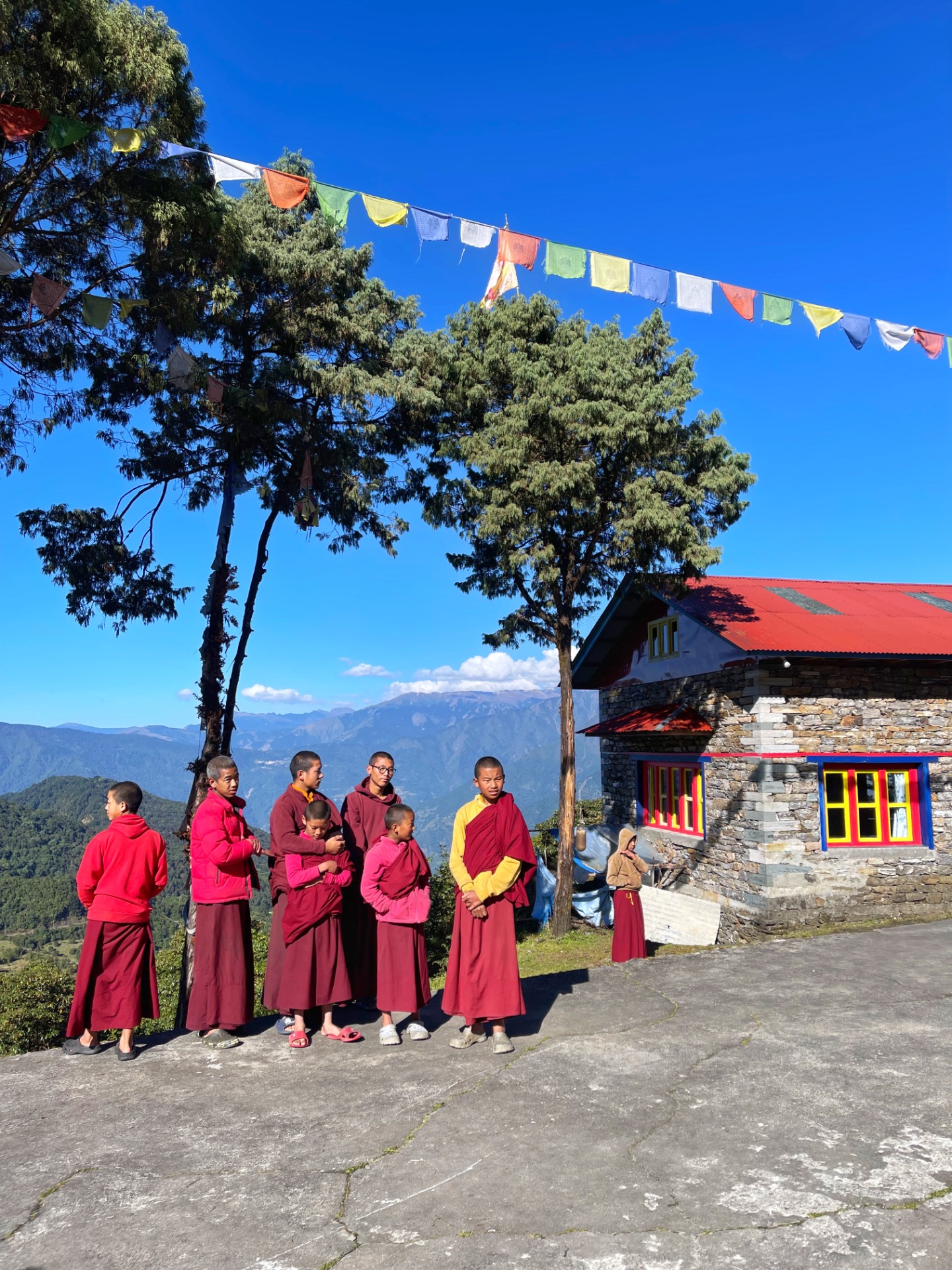Fra toppen av Kari La følger vi en tydelig sti som slynger seg gjennom skog og små bosetninger, før terrenget gradvis åpner seg på vei mot Pangom. Den siste delen av etappen går gjennom vakre rhododendronskoger og terrasserte jorder før vi ankommer landsbyen Pangom (rundt 2 850–2 900 moh.).