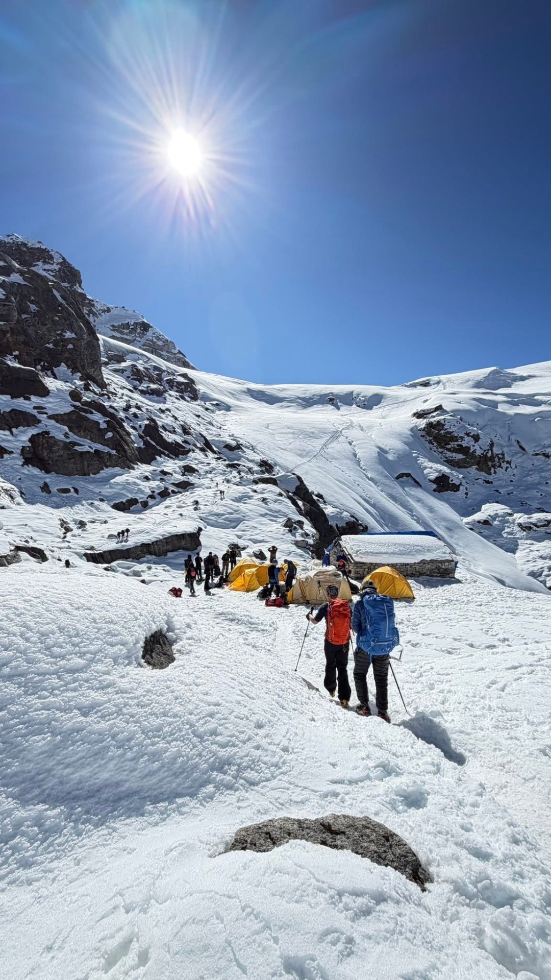 Ved ankomst High Camp, rundt lunsjtider, etablerer vi leir og gjør klare alle forberedelser til toppstøtet neste natt – alt klatreutstyr, klær og proviant dobbeltsjekkes.